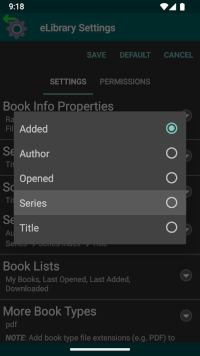 The "Sort Properties" setting allows you to specify which book information properties will be available as sort options in the main eLibrary Manager book list view. The order of the properties in this section dictates the order that they will be presented as sort options. The default set of sort properties is title, author, add date, last opened date, and series index.